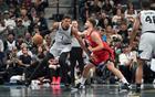 乌度卡试图拿走文班亚马的低位进攻,当文班亚马拿球进行夹击,迫使文班亚马出球,然后全员快速轮转补位,然后放马刺部分球员三分投射,其中申京先后对位瓦塞尔和尚帕尼,申京先后放掉瓦塞尔和尚帕尼,从而包夹文班亚马。